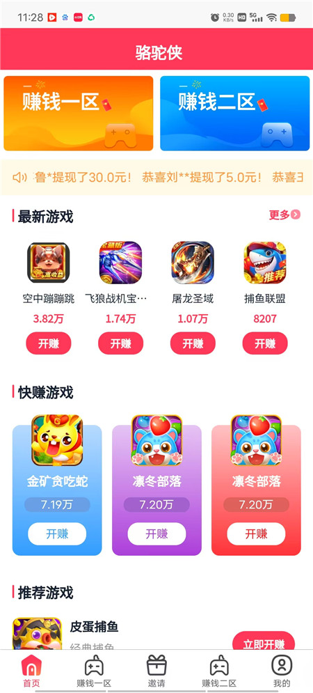 最后还有一个软件,虽然不是看剧赚钱的软件,但是如果你业余的时间比较多的话,那么想要赚点红包,还可以去试试玩游戏,骆驼侠这个软件上面有大量的可以领取红包的小游戏!